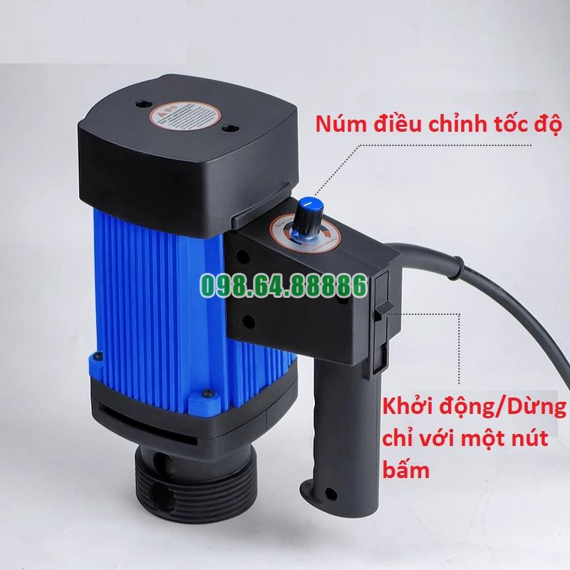 Máy bơm có thiết kế cầm tay tiện lợi, giúp người sử dụng dễ dàng mang theo và thao tác trong môi trường làm việc hẹp hoặc di chuyển giữa các khu vực khác nhau. Thiết kế này giúp tiết kiệm không gian và tạo sự linh hoạt khi làm việc với thùng phuy hoặc các bồn chứa có kích thước lớn.