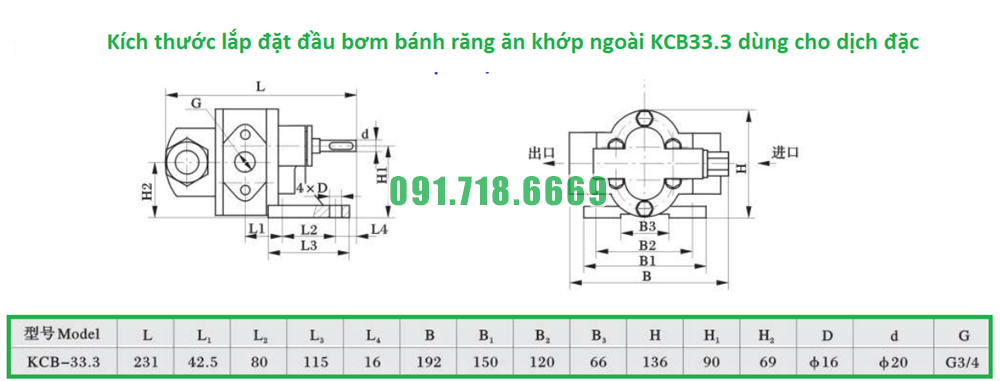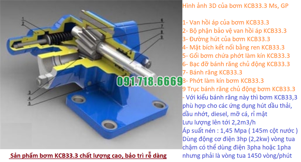 Tổng đài liên hệ mua máy bơm bánh răng KCB33.3 bằng thép tốc độ 1400 vòng/phút