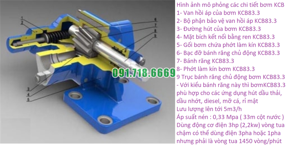 Ảnh đặc điểm chi tiết của bơm bánh răng KCB83.3 công suất 2.2 kw