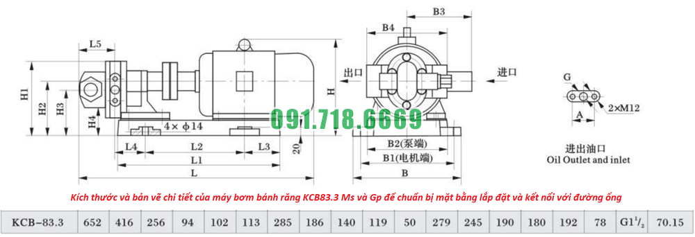 Bản vẽ kỹ thuật của bơm bánh răng KCB83.3 công suất 2.2 kw