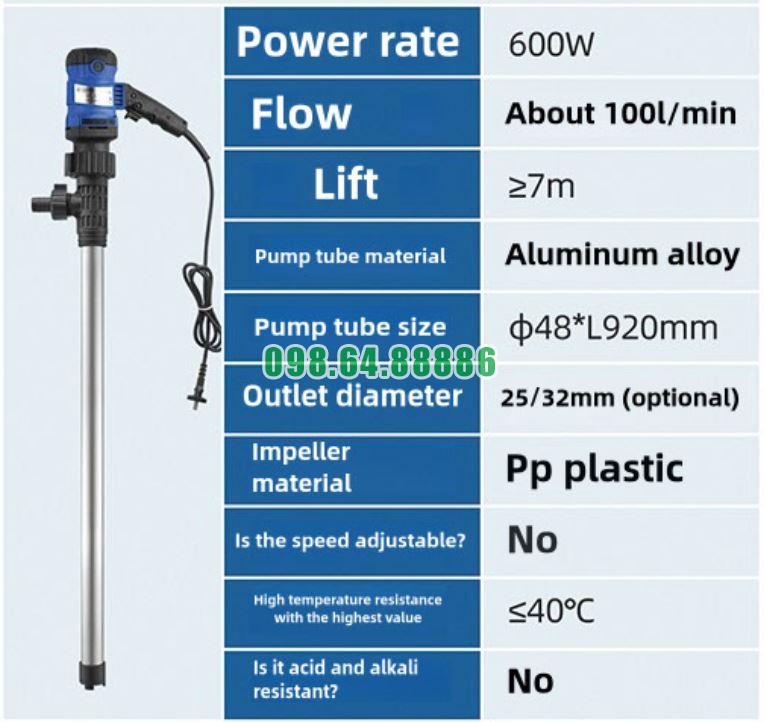 Vận hành Máy bơm thùng phuy điện model JDT-L92-600W hiệu quả đòi hỏi kiểm tra kỹ trước khi dùng, tuân thủ đúng quy trình khi hoạt động và vệ sinh bảo trì đều đặn. Khi sử dụng đúng kỹ thuật, máy sẽ mang lại lưu lượng mạnh, dòng chảy ổn định, giảm sự cố và kéo dài tuổi thọ thiết bị. Đây là điều quan trọng để đảm bảo an toàn và nâng cao hiệu suất trong sản xuất.