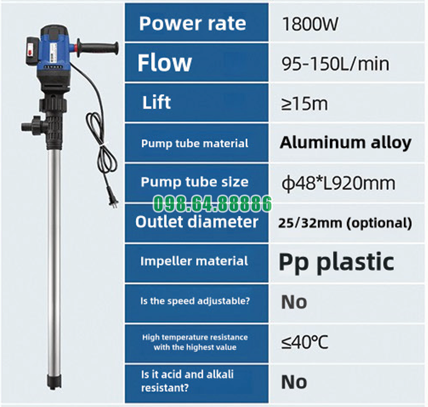 Bơm điện thùng phuy cao cấp JDT-1800W-L92 giải quyết mọi bài toán về chiết rót