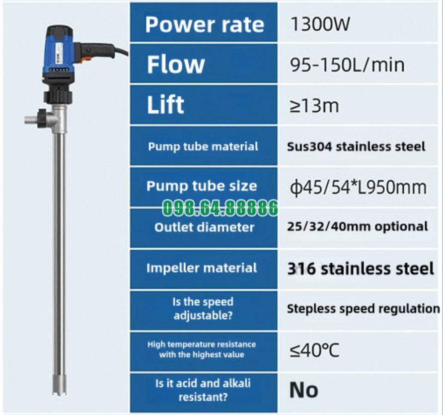 Bơm điện thùng phuy JDT-1300W-304SUS ít hỏng vặt và tiết kiệm chi phí sửa chữa