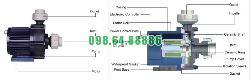 - Truyền động từ tính (Magnetic Drive) giúp ngăn rò rỉ ngay cả khi bơm các chất lỏng độc hại, ăn mòn hoặc dễ bay hơi.