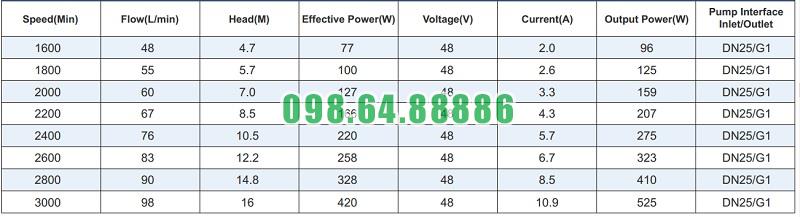 Bảng thông số kỹ thuật bơm hóa chất điện áp 24v và 48v TDM-400ERU-DC48