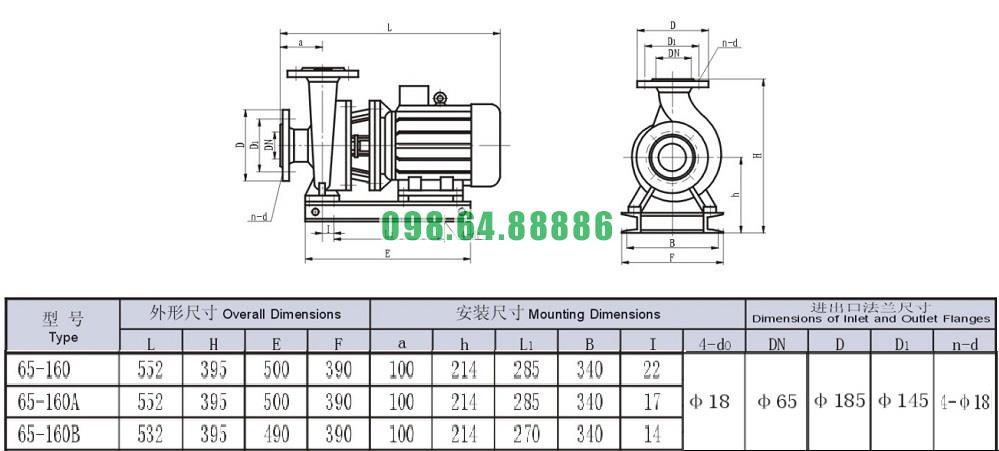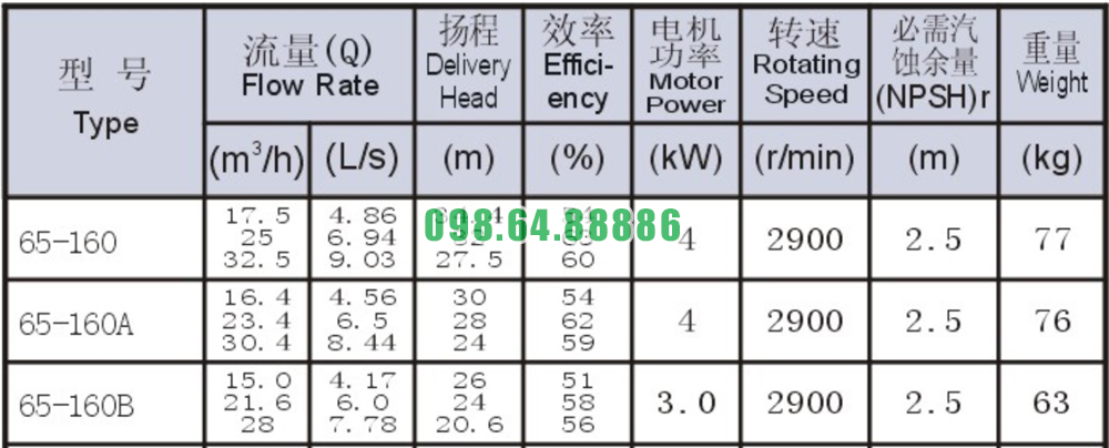 Bơm nước nằm ngang SLW-ISW65-160 năng suất từ 54% - 54%