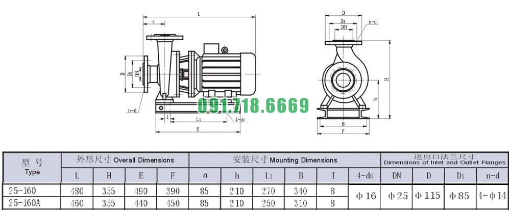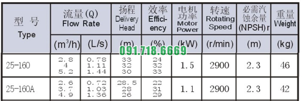 Bơm nước trục ngang ISW25-160 tốc độ quay 2900 r/min