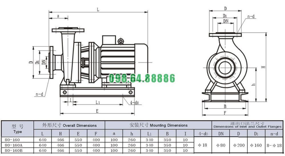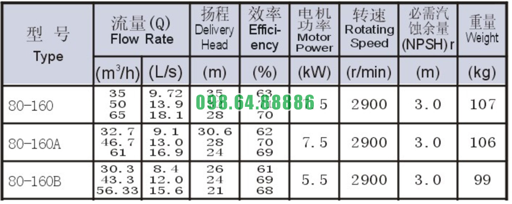 Bơm nước trục ngang SLW80-ISW80-160 tốc độ quay 2900 r/min