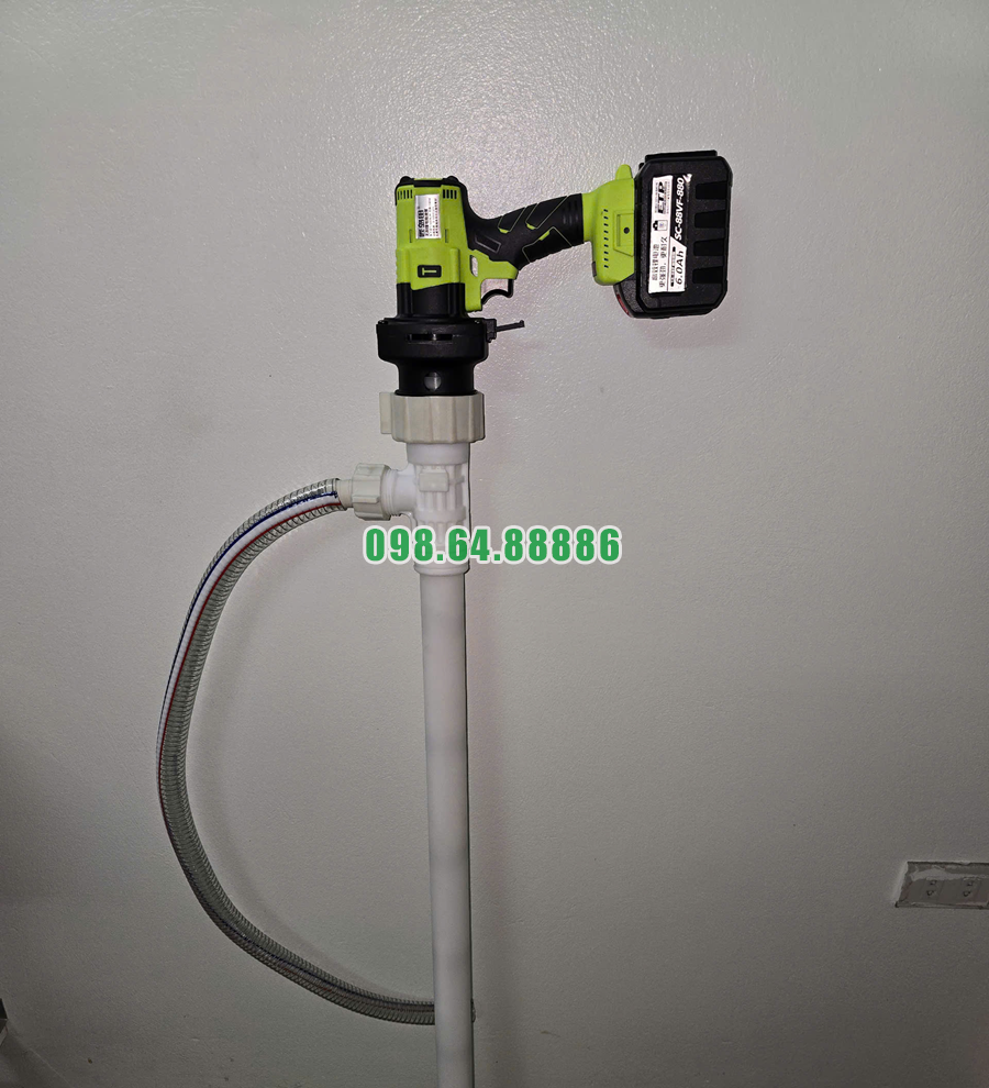 - Bật bơm: Nhấn nút khởi động trên tay cầm của bơm. Khi bơm hoạt động, nó sẽ bắt đầu hút dung dịch qua ống hút và đẩy ra ngoài qua ống xả.