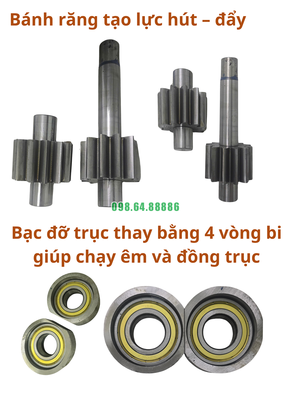 Khi bánh răng đã mòn quá giới hạn, cần thay mới để tránh ảnh hưởng đến trục và vòng bi.