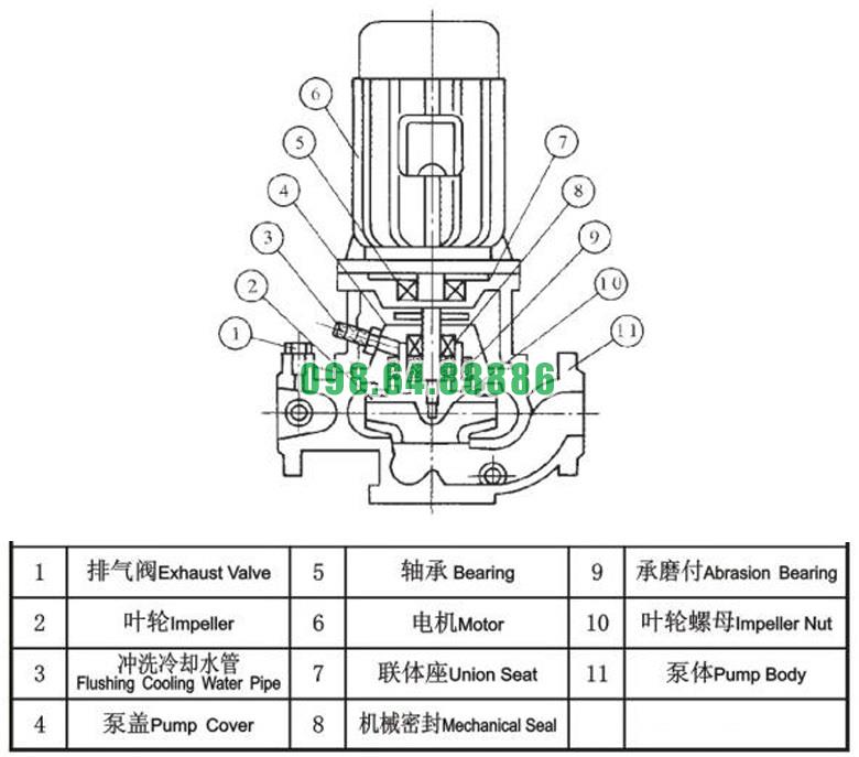 Giá bơm ly tâm trục đứng mã ISG25-125 lưu lượng 1.11 L/s