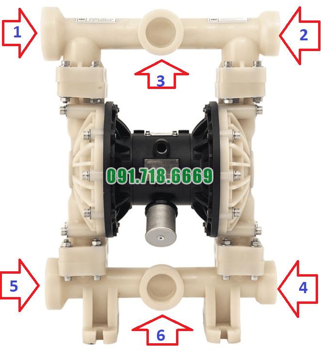 Các bộ phận kết nối và phụ kiện: Bơm màng khí nén cũng bao gồm các bộ phận kết nối như ống dẫn và phụ kiện để kết nối với các hệ thống cung cấp và điều khiển chất lỏng.