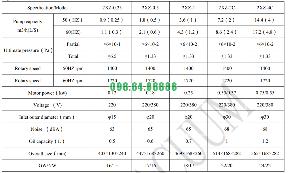 Dầu chân không là yếu tố bắt buộc trong bơm 2XZ-2:
