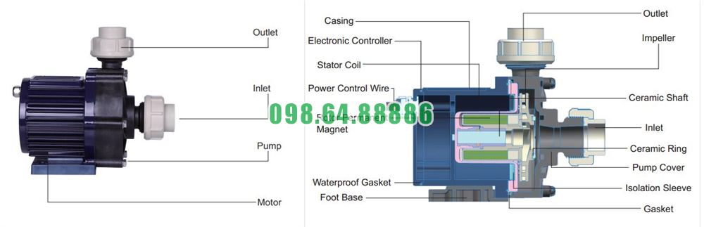 ✅ Dẫn động từ (Magnetic Drive) giúp giảm ma sát, hạn chế hao mòn, tăng tuổi thọ bơm.