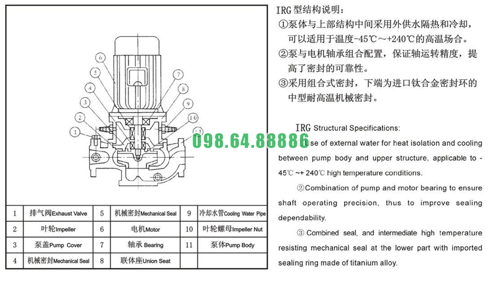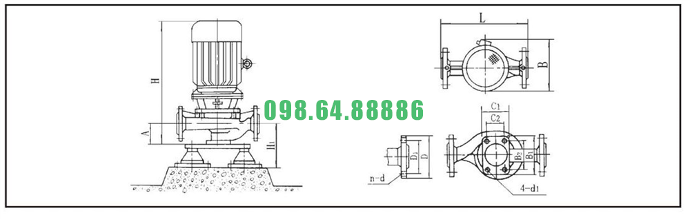 Máy bơm inline ly tâm trục đứng ISG25-160, IRG25-160 đẩy cao 32m động cơ 1.5 kw