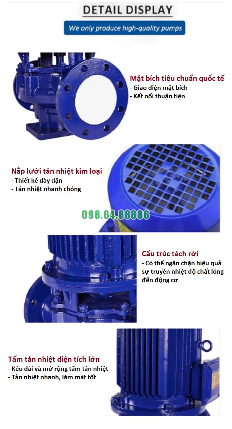Máy bơm lùa, tăng áp, bơm đường ống, bơm inline ISG65-200B, IRG65-200B, 5.5kw