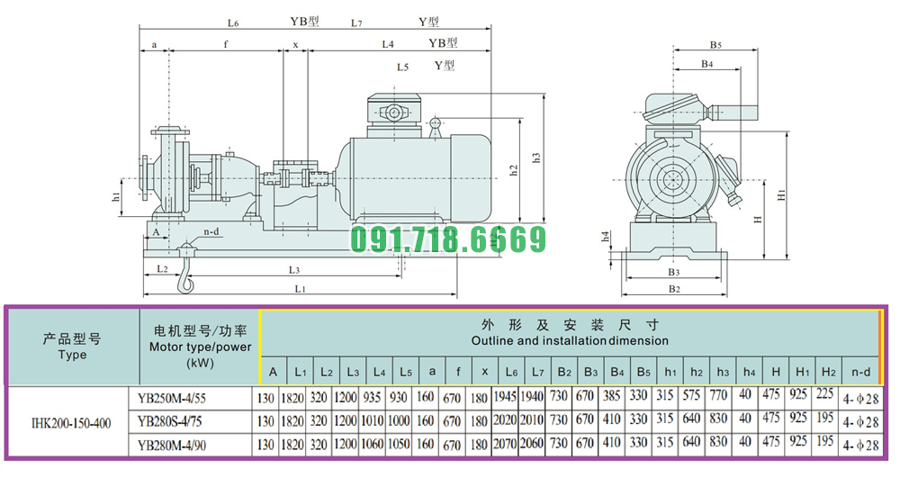 Máy bơm nước li tâm trục ngang cánh hở IHK200-150-400 động cơ điện 90kw