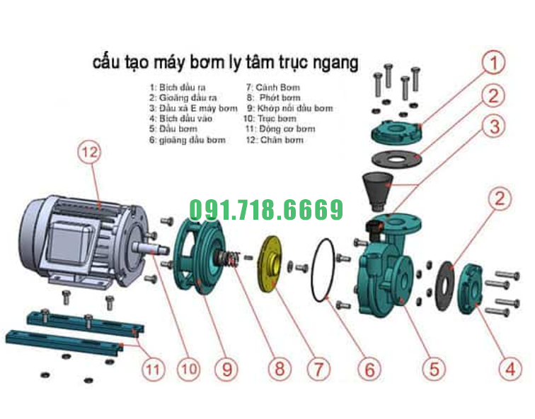 Rotor: Rotor là thành phần xoay trong máy bơm và được đặt trong vỏ bơm. Rotor có thiết kế li tâm, giúp tạo ra lực ly tâm để bơm nước từ một vị trí thấp đến vị trí cao hơn.