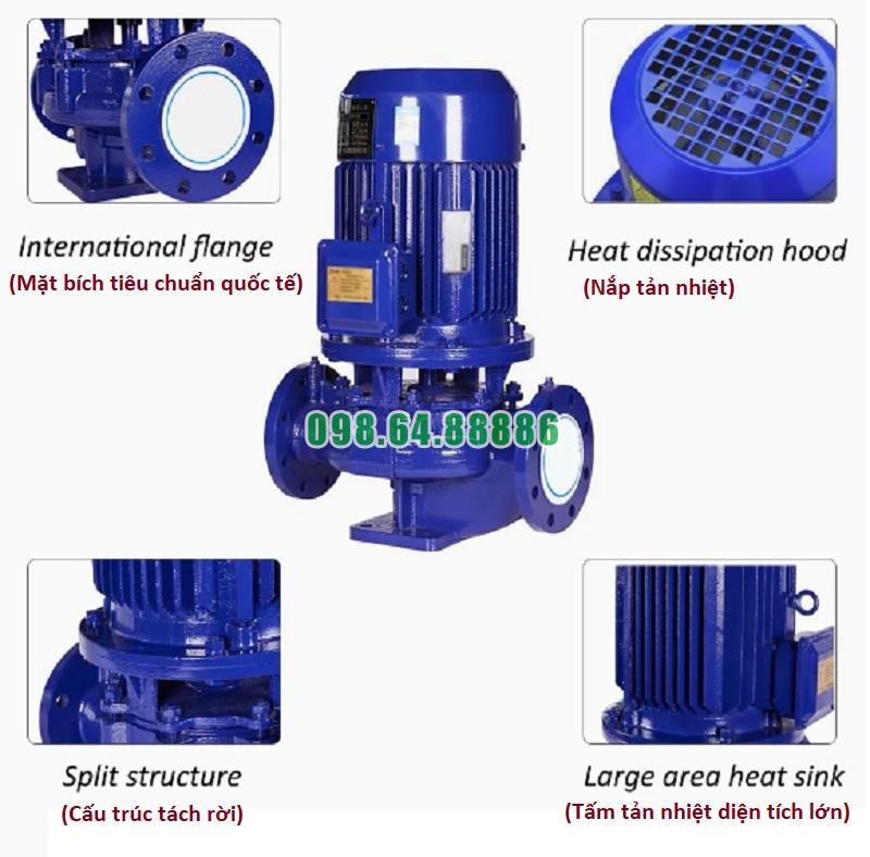 Máy bơm tăng áp trục đứng, inline, bơm lùa ISG80-200A, IRG80-200A 11kw, 46.8m3, 44m